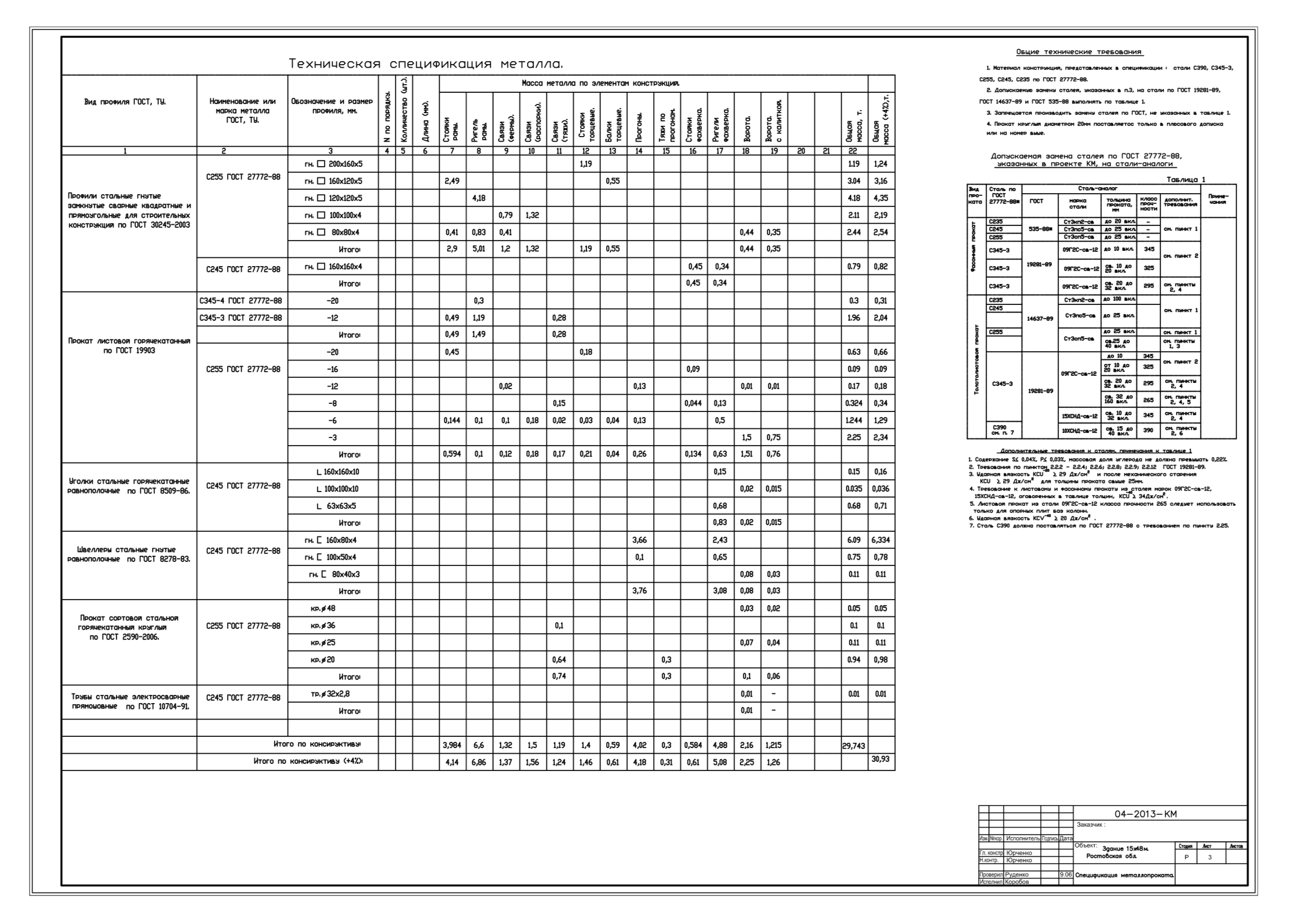СПЕЦИФИКАЦИЯ МЕТАЛЛОПРОКАТА