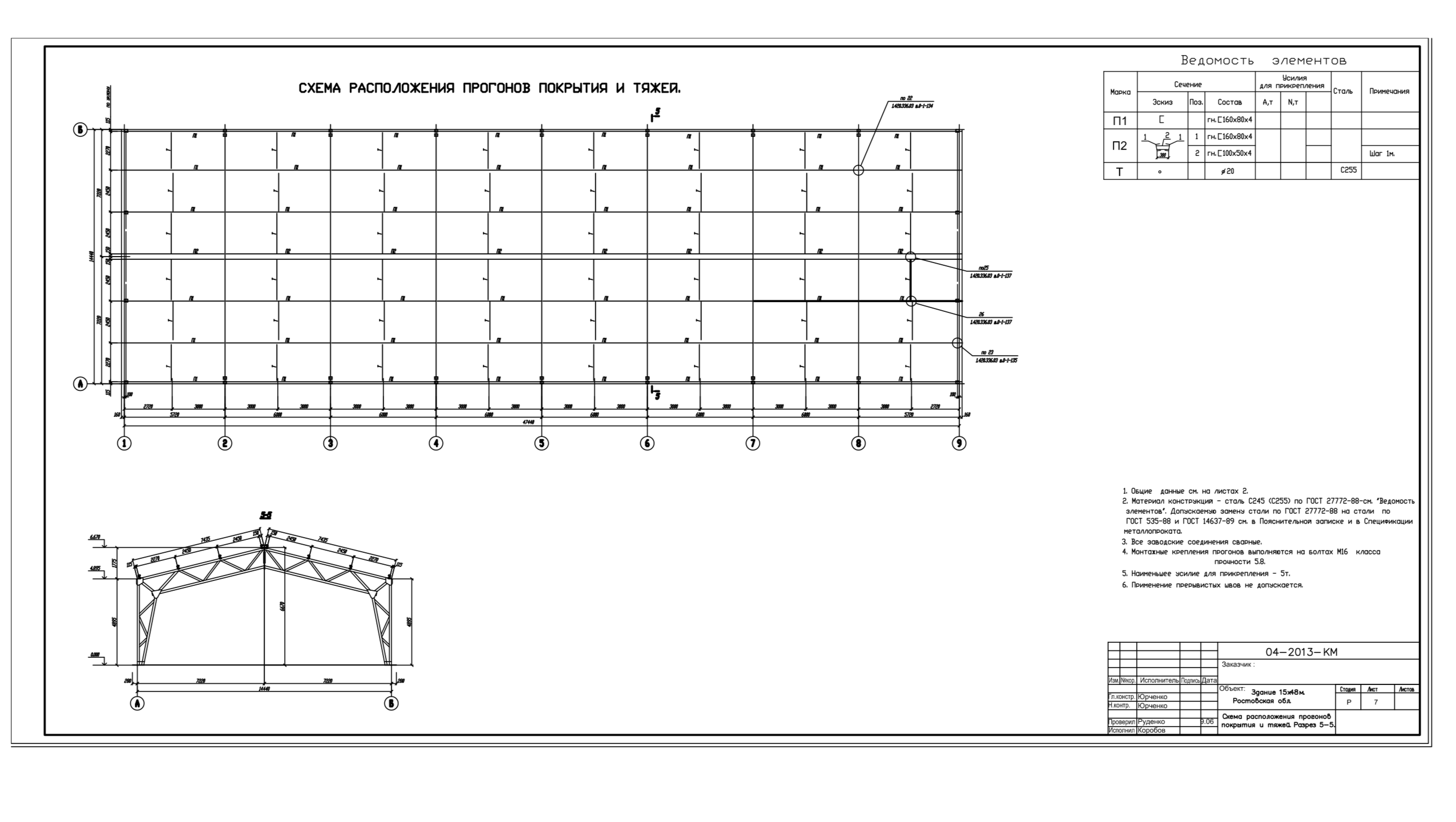 СХЕМЫ ПРОГОНОВ ПОКРЫТИЯ И ТЯЖЕЙ